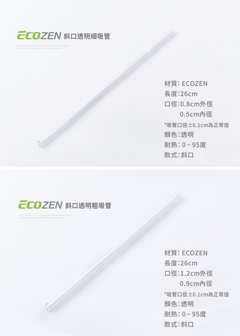 Ecozen 透明斜口吸管-26cm (粗/細)