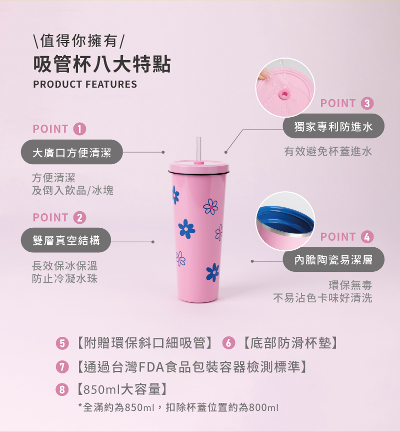 • 甜酷調色盤系列 二代不鏽鋼吸管杯850ml 任選X1