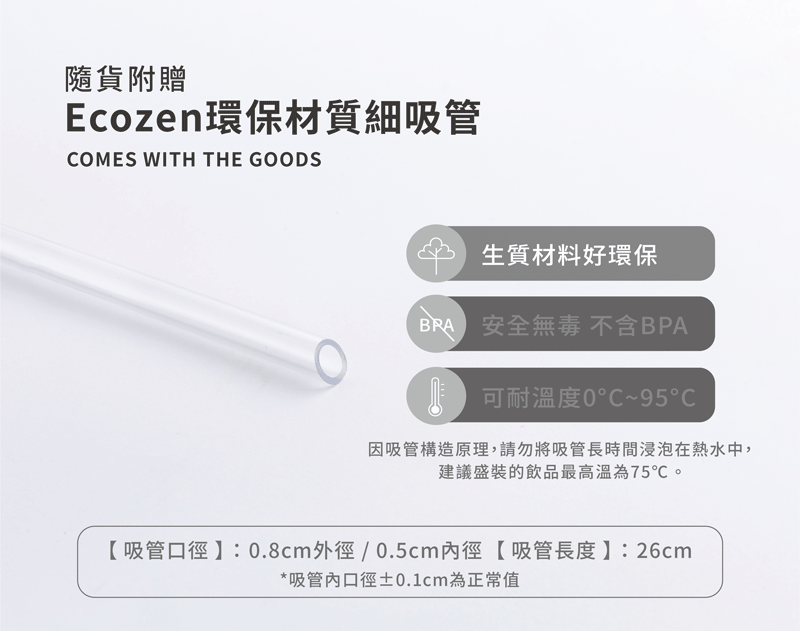 -(隨附) 環保材質透明斜口細吸管26cm X1
