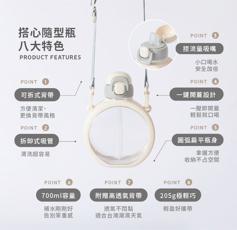 • 圓弧瓶型,好拿握、好放置;控流吸嘴更安全