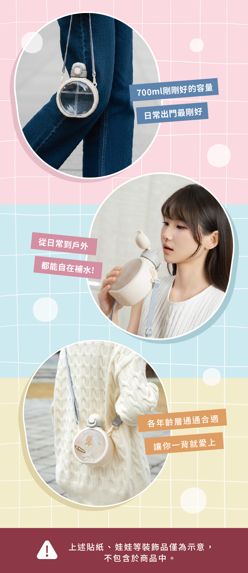 • 背帶D型掛勾設計貼身百搭,配件娃包1+1