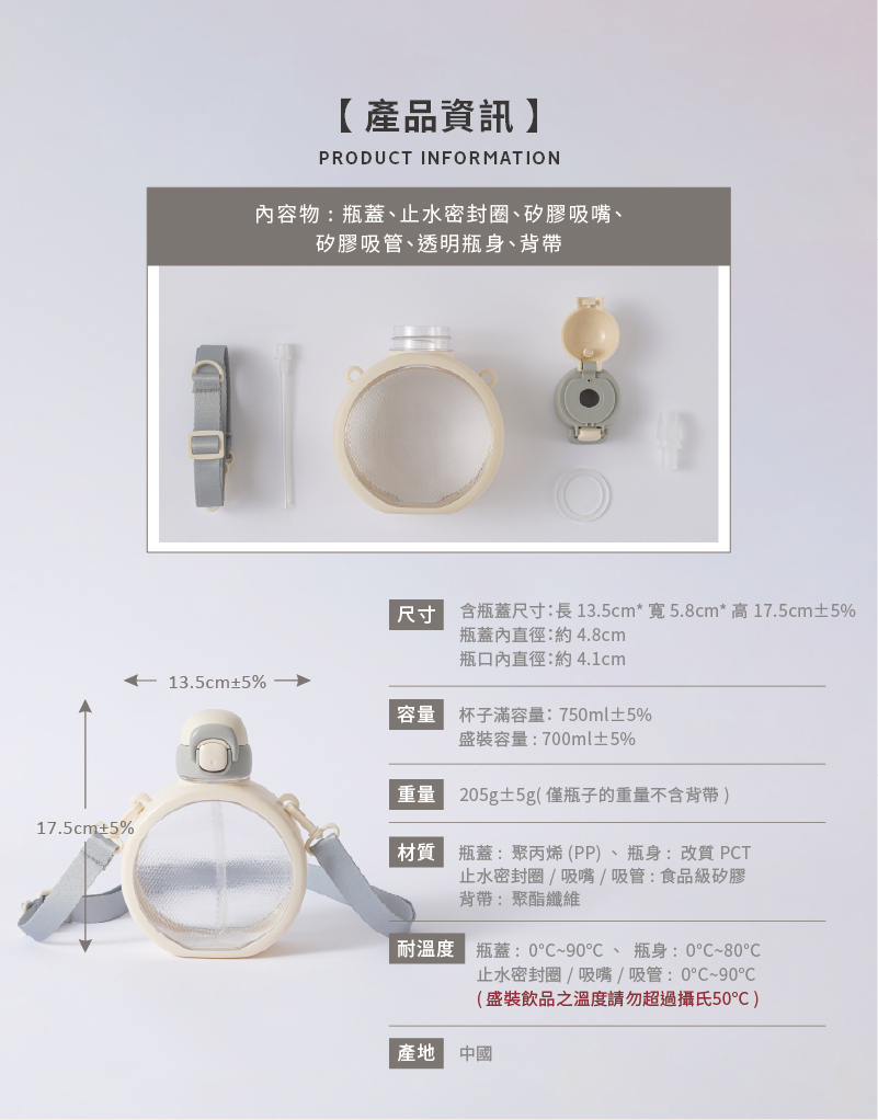 【重量】205g±5%(瓶身重量不含背帶)